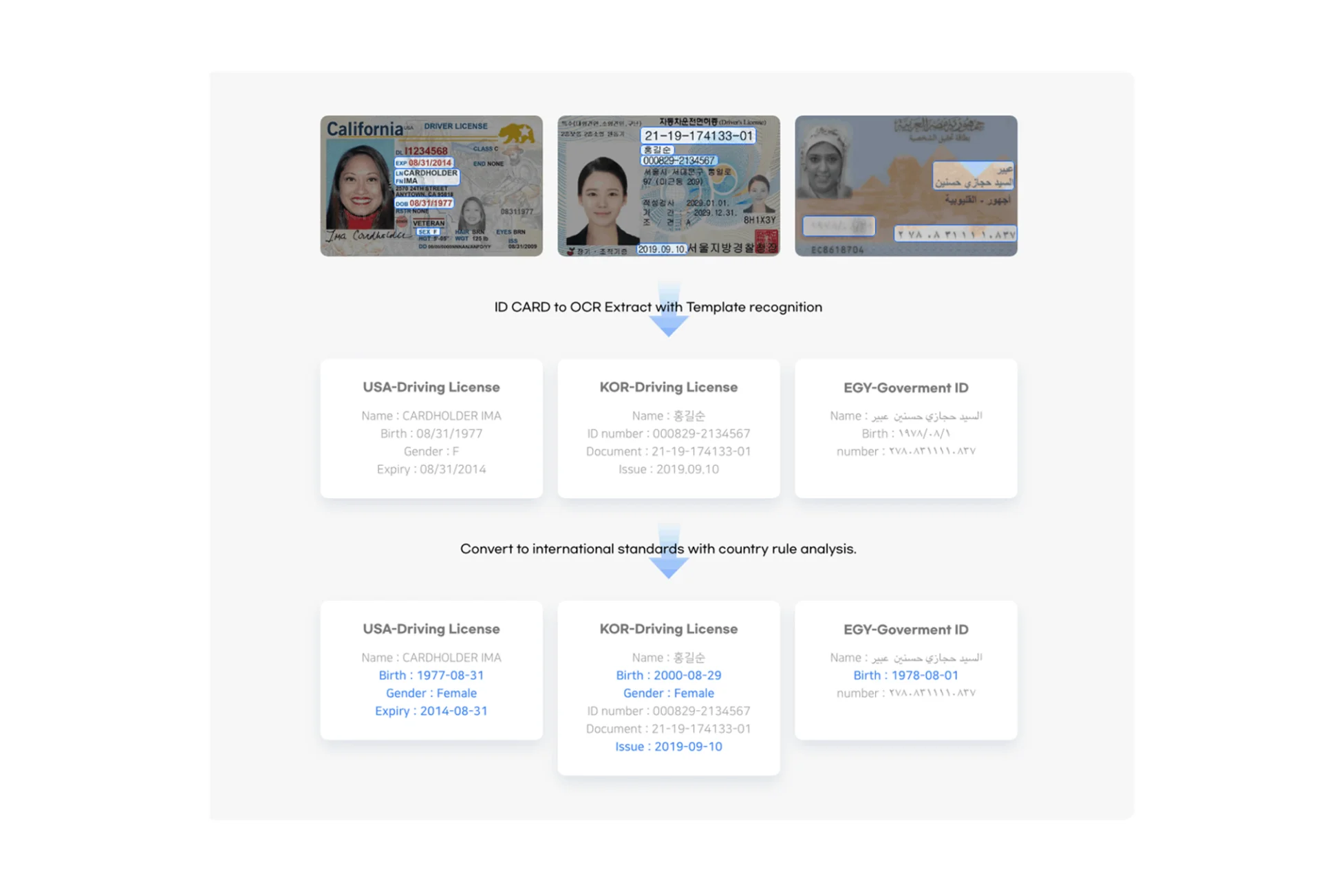 이제 ARGOS eKYC는 각각의 국가별 표기 방식을 해석하고, 이를 표준화하는 큰 업데이트를 통해, 그간 지원이 어려웠던 일부 로컬 신분증에 대해서 보다 빠르고 정확한 신원 확인을 가능하게 합니다.