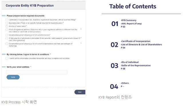 컴플라이언스 관점에서 좀 더 넓은 커버리지도 제공해주셨으면 해요. KYB Report를 통해서 법인의 도식화된 지배구조 정리, 그 구조에 대한 각 증빙자료, 스크리닝 결과를 제공해주시는 부분은 잘되어 있다고 생각해요.